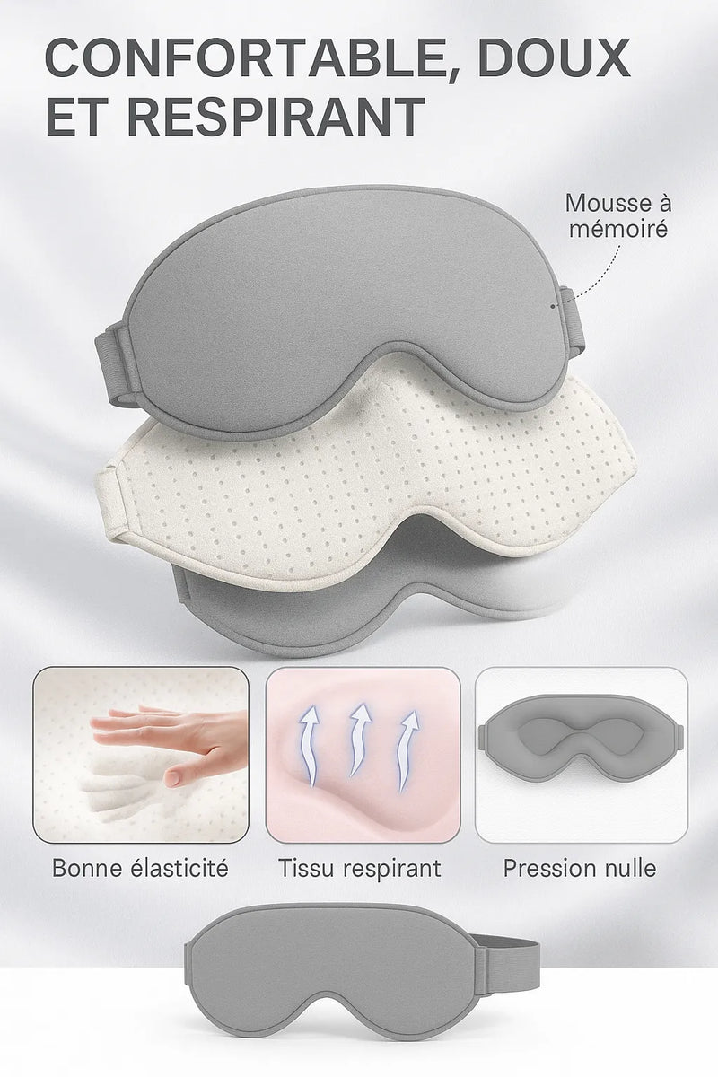 Ce masque 3D bloque 100% de la lumière sans appuyer sur vos yeux, pour des nuits enfin réparatrices.